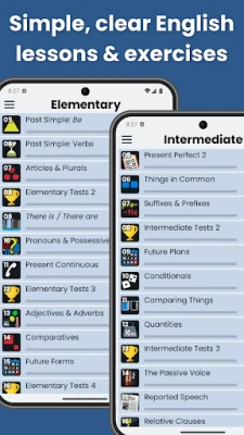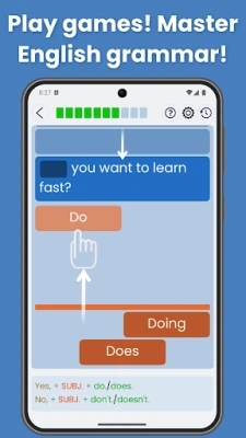 English Grammar Star nu este doar despre reguli, ci despre aplicare practică. Antrenați-vă conjugarea verbelor neregulate într-un mod rapid, perfecționați-vă înțelegerea sufixelor printr-un curs dedicat și testați-vă progresul cu jocuri provocatoare la fiecare nivel (A1, A2, B1). Exercițiile de ascultare și pronunția clară, atât în varianta americană, cât și britanică, vă vor spori încrederea în conversațiile zilnice. Fie că vă pregătiți pentru examene internaționale precum IELTS sau TOEIC, doriți să excelați la cursurile ESL, sau pur și simplu aspirați să vorbiți engleza fluent, această aplicație face învățarea distractivă și eficientă, transformându-vă într-un vorbitor competent.