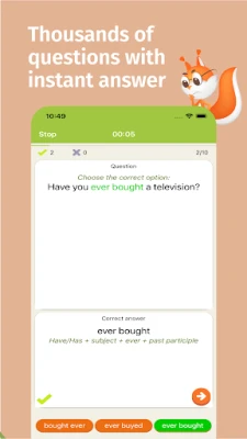 Perfecționează-ți gramatica engleză direct de pe telefon cu această aplicație inovatoare, concepută special pentru vorbitorii non-nativi. Accesează mii de întrebări practice, fiecare cu explicații instantanee detaliate, organizate clar pe subiecte specifice pentru o învățare eficientă și structurată.