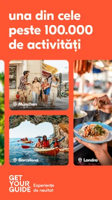 Explorează lumea cu GetYourGuide, ghidul tău personal pentru aventuri memorabile. Descoperă și planifică fără efort cele mai captivante tururi și activități de pe glob, transformând fiecare călătorie într-o experiență de neuitat. De la accesul privilegiat la comori culturale și arhitecturale de renume mondial, până la incursiuni inedite în esența locală a fiecărei destinații, GetYourGuide îți deschide porțile către cele mai autentice și spectaculoase momente. Cu GetYourGuide, vei găsi mereu ceva extraordinar de explorat, indiferent dacă ești un călător experimentat sau un explorator ocazional.