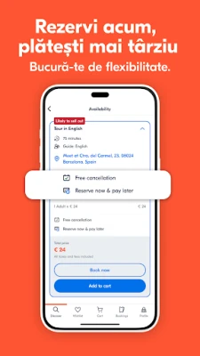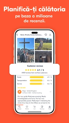 Călătorește cu încredere deplină, știind că GetYourGuide te susține la fiecare pas. Oferim suport dedicat 24/7, disponibil prin e-mail, telefon și WhatsApp, în multiple limbi, pentru a răspunde oricărei întrebări sau solicitări. Mai mult, opțiunile noastre de anulare flexibilă îți permit să îți ajustezi planurile fără stres: majoritatea rezervărilor pot fi anulate gratuit cu până la 24 de ore înainte de activitate. De la explorarea magiei lumii vrăjitorilor într-un tur Harry Potter, la degustări culinare în Barcelona sau la săritul rândurilor la Vatican, GetYourGuide a ajutat milioane de călători să transforme visele în realitate, oferind acces la cele mai populare destinații și atracții globale.