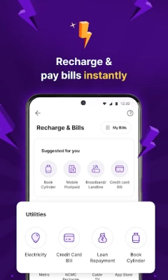 PhonePe este o aplicație completă pentru plăți și servicii financiare. Utilizează BHIM UPI, carduri de credit/debit sau portofel pentru a reîncărca mobilul, a plăti facturile și a face plăți rapide în magazine online și fizice. De asemenea, PhonePe îți permite să investești în fonduri mutuale și să achiziționezi planuri de asigurare, inclusiv asigurări auto și moto.
